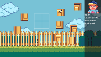 Instructions: Place puzzle pieces in the grid to build a door. You'll never know where you'll be building a door next! *CAUTION* not all pieces fit. Good luck!
